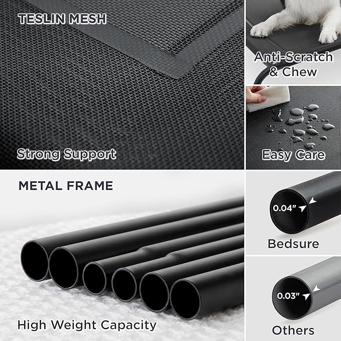 - Strong & Durable: Heavy-duty Teslin mesh holds up against scratching and chewing, providing excellent support and even pressure distribution to reduce joint and muscle pain. The strength-tested lightweight metal frame supports dogs up to 75 lbs.