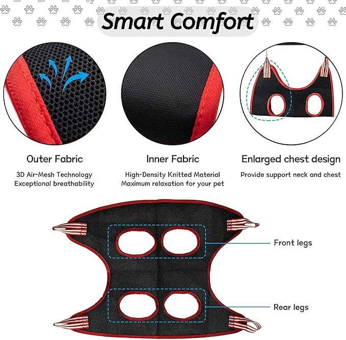- 【Sturdy and Durable】The dog sling for grooming helper is made of a mesh-like cloth, and the sling is knitted using a particular technique rather than a rope ring design, so you don't have to be concerned about it ripping or falling undone. The dog sling for nail clipping is defendable and strong; you can keep using it even after washing. The dog harness for nail trimming can be easily clean and reusable.