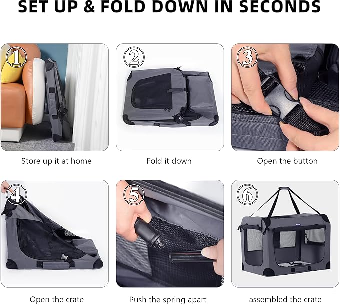 - 【Large Capacity&Portable】Portable medium dog crate: 32*23*23inch, perfect for medium & large dogs(such as Border Collie, samoyed, bulldog, etc.). Hold pets up to 30- 60 pounds. The soft dog crate can be folded/unfolded easily without tools in seconds, it is easy to store and save space.