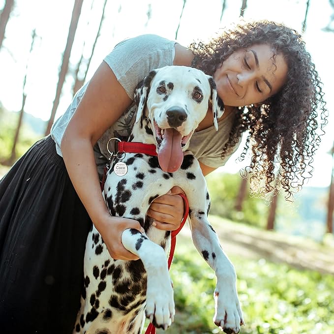 - 【Personalized Dog Tags Material】This Tag is made of zinc alloy and finished with epoxy making it's surface sleek, stainless and durable, won't fall off.