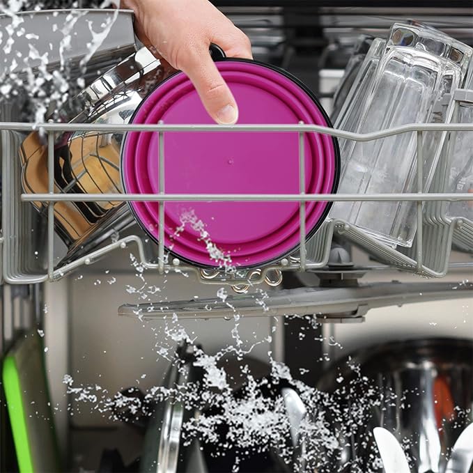 - EASY TO CLEAN: these compact dog food bowls are dishwasher safe,hand wash also available.Please rinse or wipe clean the bowl after each use.One set come with 2 different colors,so easy to consistently designate one bowl for food and one bowl for water.Great pet travel bowls for on the go.