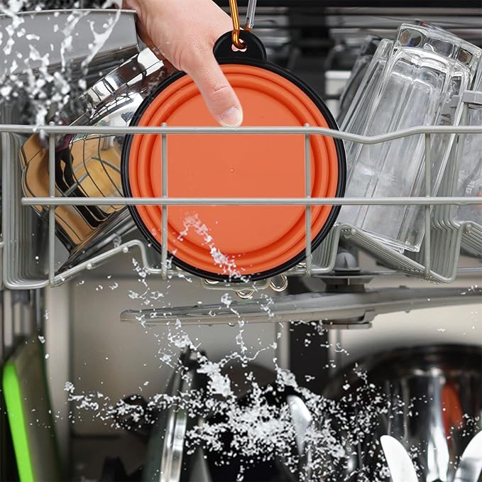- EASY TO CLEAN: these compact dog food bowls are dishwasher safe,hand wash also available.Please rinse or wipe clean the bowl after each use.One set come with 2 different colors,so easy to consistently designate one bowl for food and one bowl for water.Great pet travel bowls for on the go.