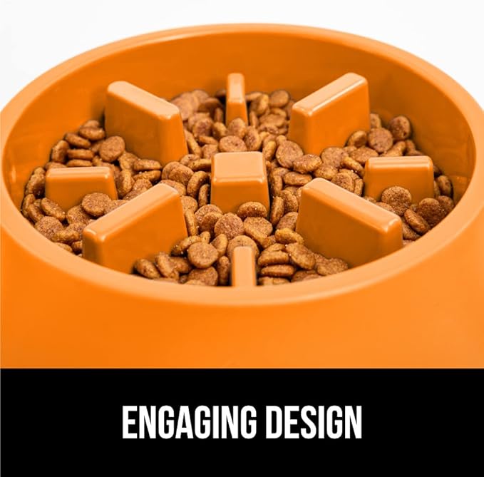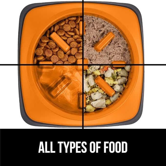 Gorilla Grip Slow Feeder Dog and Cat Bowls, Interactive Puzzle Toy for Dogs and Cats Food Training, Keeps Pets Busy and Prevents Puppy Overeating, Large, Small Breeds, 100% BPA Free, 4 Cup Orange