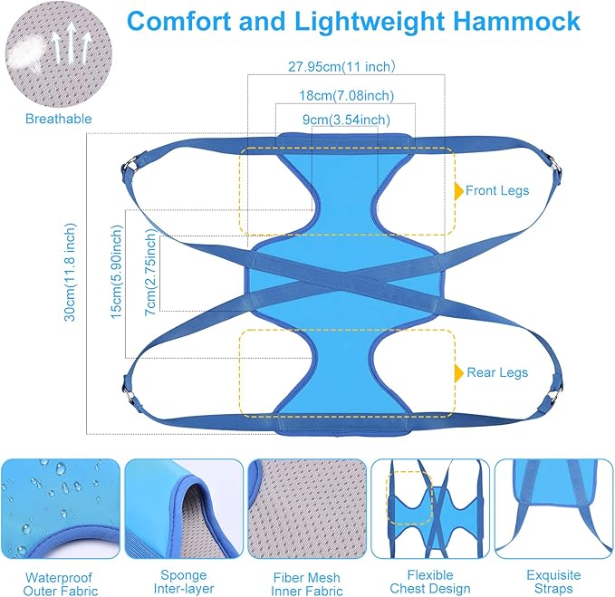 - 【Suitable for Most Small-Median Pets】This pet grooming hammock is designed for 2-5 lbs pets use,the flexible chest and legs design is suitable for most body type of pets and let your pets put on this hammock easily. Stable hammock will protect your pet wouldn’t falling down.