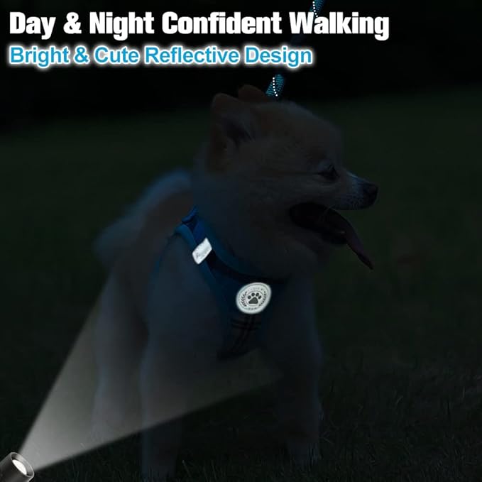- 🐶Comfortable and Reflective ---Adjustable dog harness features colorful plaid and breathable mesh fabric, comfortable to wear and will not stick to the dog's hair. Reflective strips deign reflect ambient light in low light conditions, making you and your dog safer when walking and moving around at night without worrying about blurred vision in the dark.