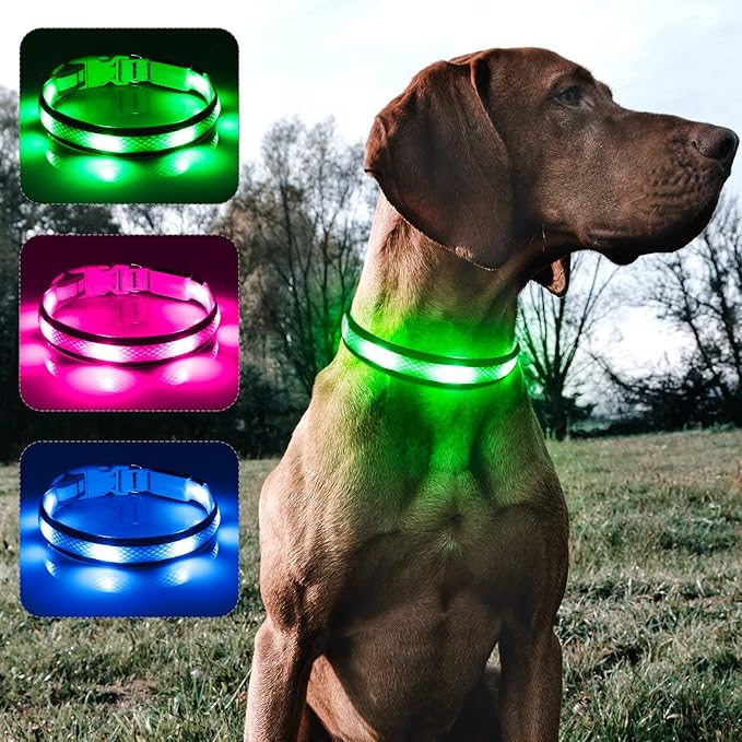LED Dog Collar Rechargeable - BSEEN Light Up Dog Collar, Glow in The Dark Dog Collar Light, Reflective Dog Collar Safety Dog Lights for Night Walking (Medium, Green Ⅱ)