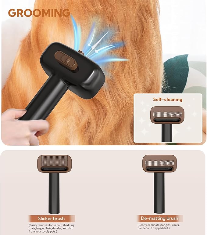 - 【Wont scare your pets】 After special noise reduction treatment, the working sound of the dog grooming vacuum cleaner is as low as 50db, 3 adjustable suction levels are available, we recommend massaging and feeding your pet before trimming pet hair, so that your pet can enjoy Feel relaxed and not intimidated while grooming.