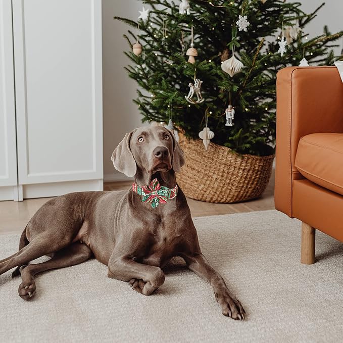 MR. CHUBBYFACE Christmas Plaid Flower Dog Collar for Boy Girl Dogs Adjustable Red Green Dog Collar with Flower for Small Medium Large Dogs