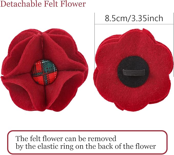 - <p>[WELL MATERIAL]:❤ The christmas dog collar is made of cotton, which is very soft and comfortable, and it won't hurt the dog's skin. Package includes a dog collar and a removable felt flower. ❤At the same time, cotton cloth is easy to clean. And We recommend hand washing to avoid the metal buckle being scratched in the washing machine.</p>
