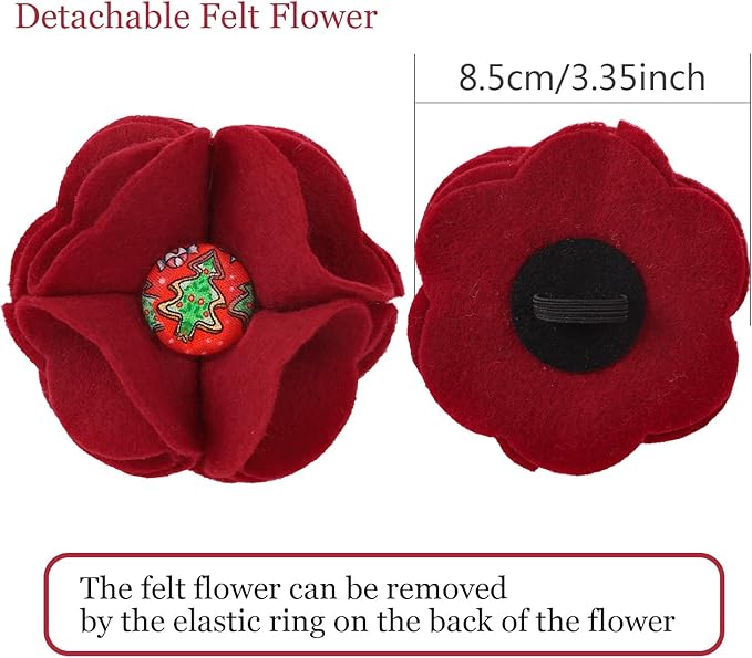 - <p>[WELL MATERIAL]:❤ The christmas dog collar is made of cotton, which is very soft and comfortable, and it won't hurt the dog's skin. Package includes a dog collar and a removable felt flower. ❤At the same time, cotton cloth is easy to clean. And We recommend hand washing to avoid the metal buckle being scratched in the washing machine.</p>