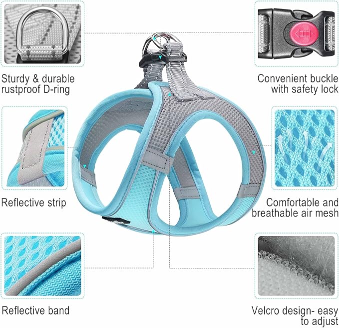 - 【 AIR MESH 】- Dog harness is made of durable thickened air mesh that featured with breathable, lightweight, comfortable, and quick-dry