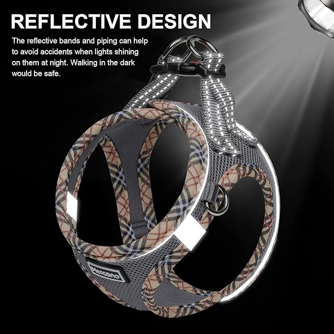 - 【Safety & Reflective】- Super 360°highly reflective strips is designed to reflect ambient light under extreme low light conditions, it can provide maximum visibility when dogs walking at night. Our No-Choke dog harness can distribute the pulling pressure evenly to the dog’s body and protect dog's trachea and throat from pulling and choking.