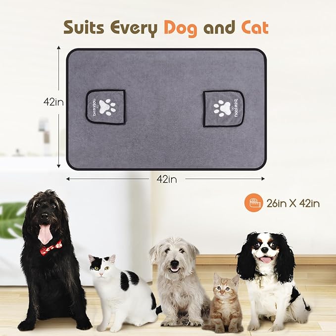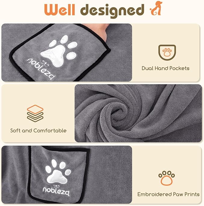 - DUAL HAND POCKETS: Thoughtful double hand pockets design of Nobleza dog drying towel provides a better grip for you to dry your furry friends, which gives you a more efficient pet drying experience than a regular towel.