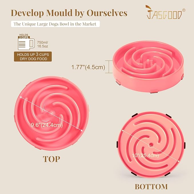 JASGOOD Slow Feeder Dogs Bowl for Large Medium Dogs,Anti-Gulping Pet Slower Food Feeding Bowls Stop Bloat,Preventing Choking Healthy Design Dogs Bowl