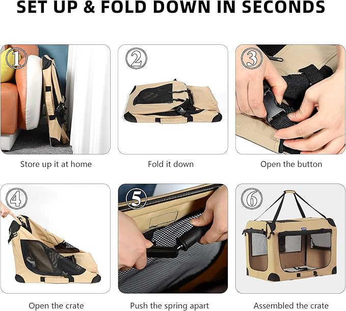 - 【Useful and thoughtful accessories】The collapsible dog crate is equipped with a plushy mat for extra comfort, which is removable & washable. What's more, there is one soft pet blanket, one foldable travel pet bowl, one poop bag, and a dispenser, your lovely pet must fall in love with them.