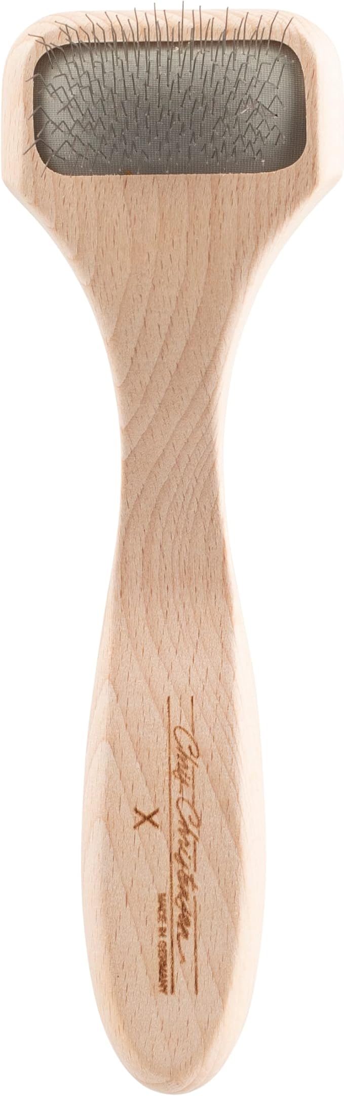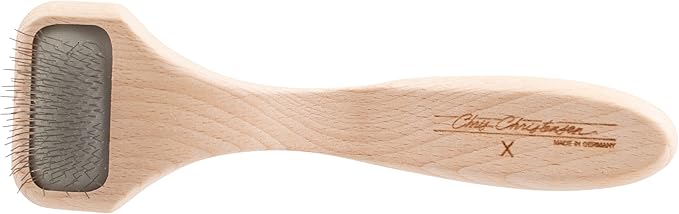 - MARK SERIES - Mark Slicker brush by Chris Christensen, maker of quality products for dog shows, show dog grooming. Beautifully handcrafted Beech wood slicker brush with high grade steel pins for less coat damage. Ultra-soft, extra flexible cushion with base of one fourth inch foam. Shape and contours of the handle do all the work for you instead of wrist being at a constant angle. Less stress for groomer and animal.