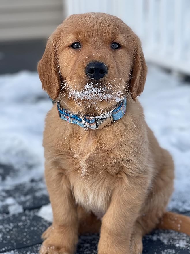 Lionet Paws Boy Dog Collar, Comfortable Adjustable Cute Blue Plaid Collar with Metal Buckle for Male Dogs Gift, Large, Neck 16-24 inches