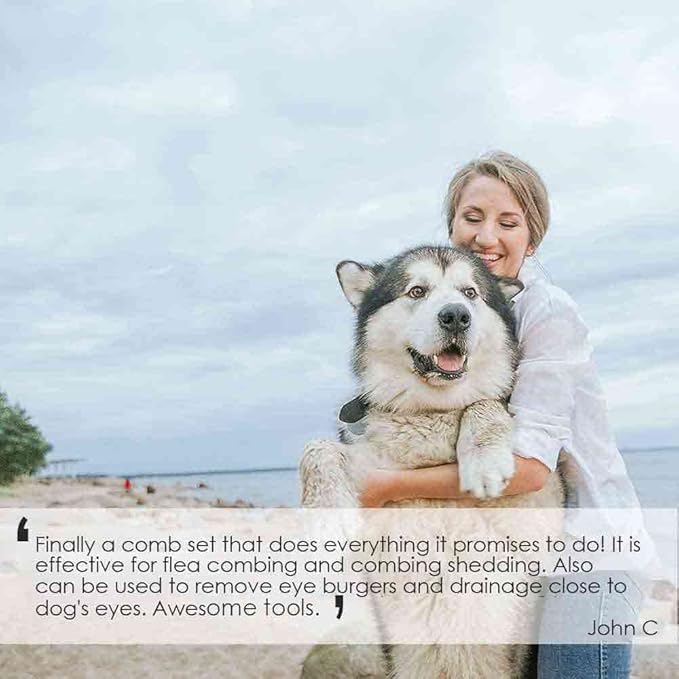 - 【THOUGHTFUL SET】Our pet grooming set includes 2 extra long-toothed combs and 2 double sides lice combs to meet different needs. Perfect for straightening out the knotted tangles hair, removing tear stain, mats, and more, as well as finishing and fluffing, easy to clean by just rinsing & keep your furry friend looking fabulous.