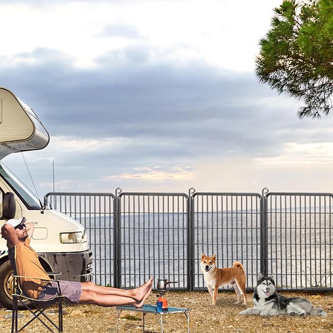 - 【Simple & Expandable Assembly】- Jhsomdr dog pens outside is easy to setup and fold up flat for easy storage and transportation. Portable pet fence is a good idea for your travel, camping, Rving or for the park and yard. Take our dog fence outdoor for yard and enjoy safe and memorable outdoor time with your furry friend