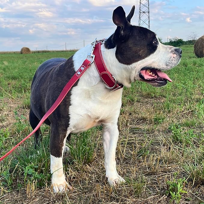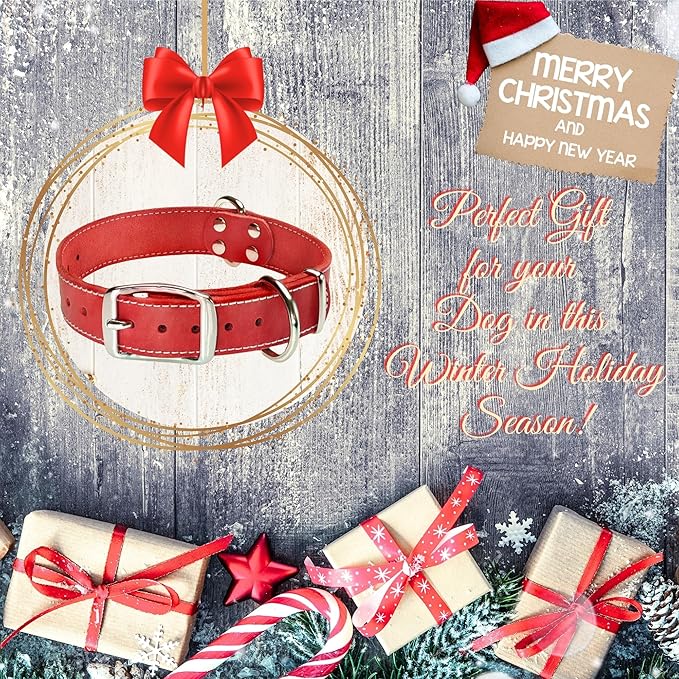 ADITYNA Heavy Duty Leather Dog Collar - Soft and Strong Red Dog Collar for Medium Dogs (Medium: Fit 13" - 20" Neck, Red)
