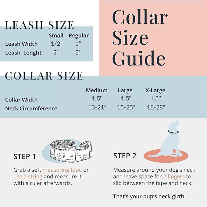 - MEASURE YOUR DOG'S NECK FOR A PERFECT FIT: Before selecting a size, measure your dog's neck for accuracy. Our wide 1.5 inch dog collar are adjustable, perfect for medium to extra large sized dogs. PLEASE NOTE: Use either a soft measuring tape or string then measure it with a ruler to select your dog's size.