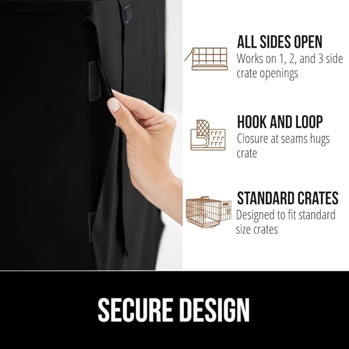 Gorilla Grip Dog Crate Covers Compatible with Amazon Basics Dog Crates, All Sides Open, Privacy Cover Fits 42" Wire Kennel, Breathable Mesh Windows, Light Reducing Puppy Training Cage Topper, Black