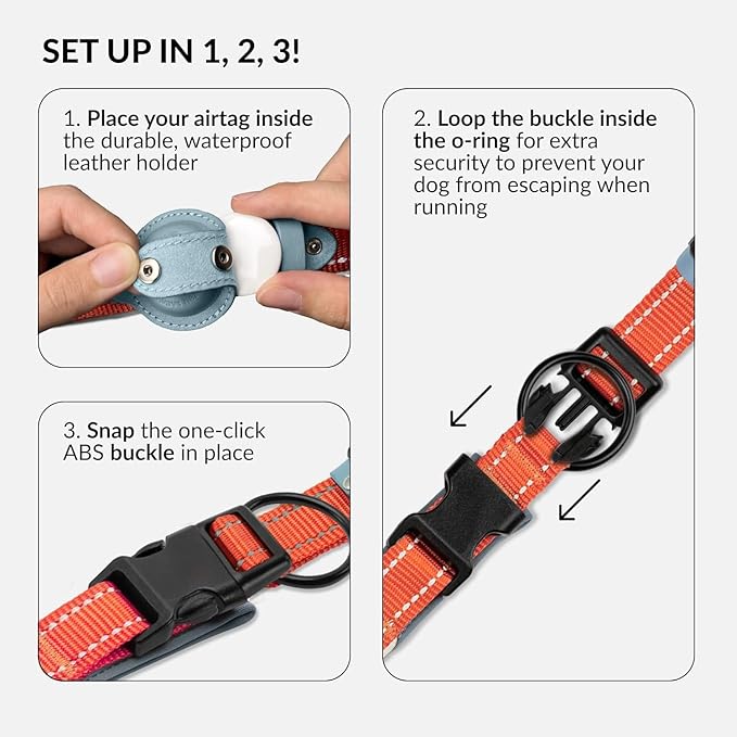 - Designed for the Apple AirTag - This dog tracking collar was designed to fit the Apple AirTag. Our airtag dog collar has a double snap and small opening to ensure your airtag's placement. Plus, the air tag collar has reflective stitching for nighttime walks.