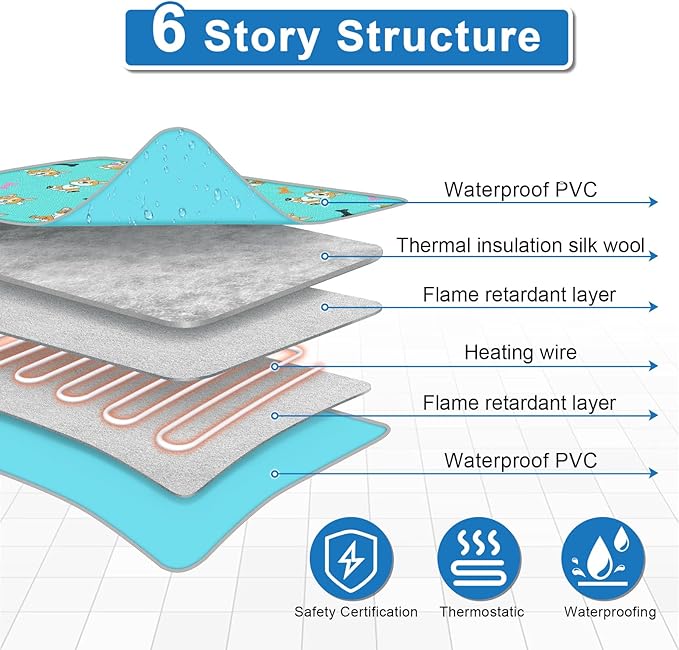 - Rapid Heating: Double spiral heating wire, it will warm up quickly in 10 minutes after turning it on, quickly provide enough heat for your pet, built-in protection against power failure, when using, please put the heating pad flat (try not to fold it over 90 degrees to use it)