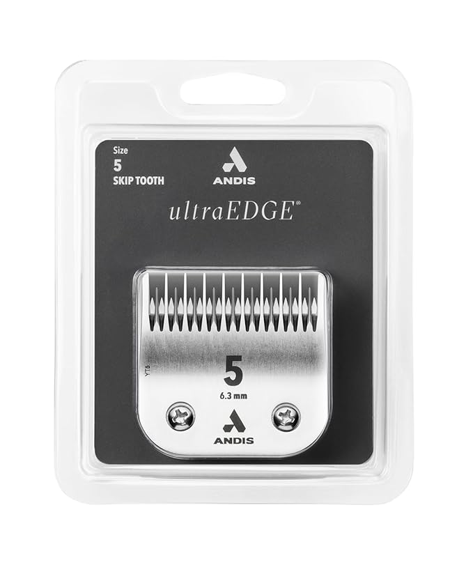 Andis Carbon Infused Steel UltraEdge Dog Clipper Blade, Size-5 Skip Tooth, 1/4-Inch Cut Length (72640),Chrome
