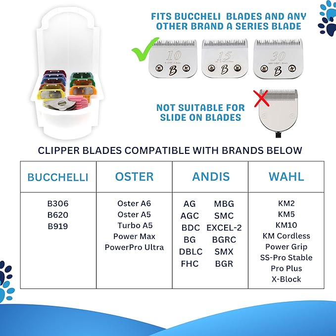 - DIVERSE COMPATIBILITY: The pet clipper comb attachment guard is compatible with Bucchelli, Andis, Conair, Wahl, Laube, Thrive, or other A5 type pet grooming clippers. The comb replacement is ideal for pet hair barbers/stylists.