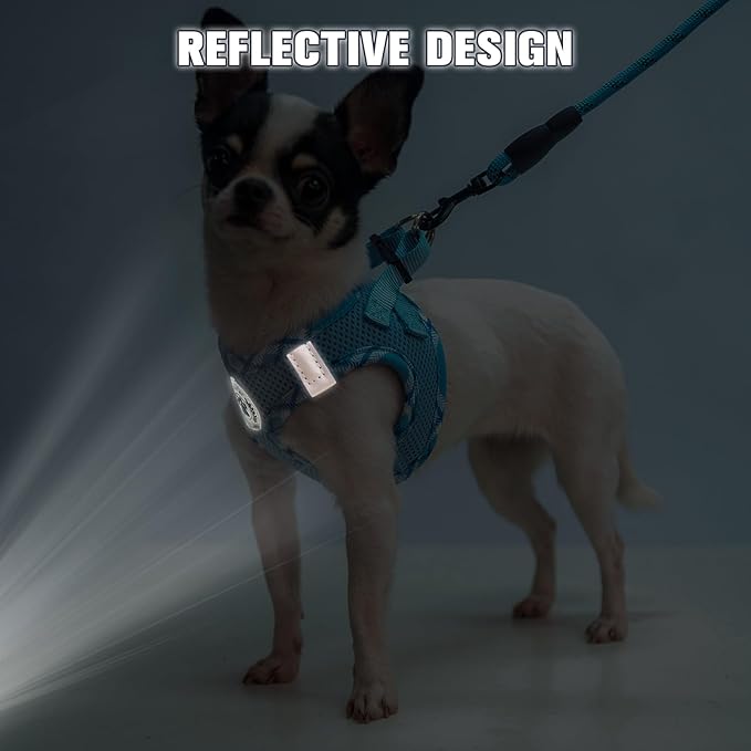 - Professional design: No pull and no choke.The puppy dog harness has a raised design at the front of the chest and is recessed at the bottom edge for a more comfortable fit. With reflective strips on the pet harness and leash, you can take your puppies out at night without worrying about not being able to find them, making them safer in the dark.