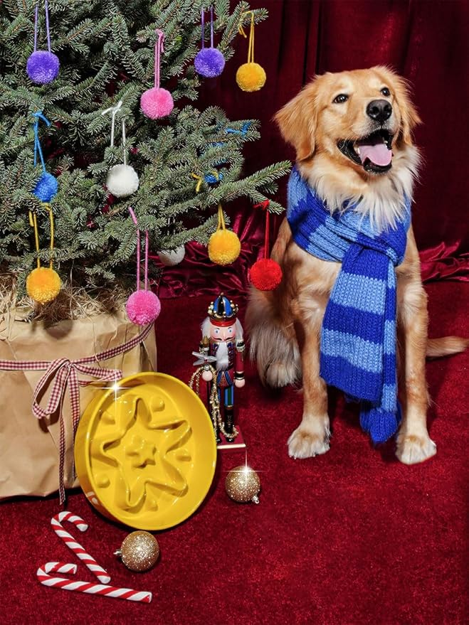 LE TAUCI Ceramic Slow Feeder Dog Bowl, 1.5 Cups, Small Medium Breed, Puppy, Star Yellow
