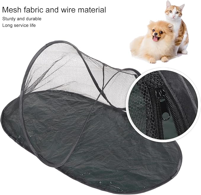 - STURDY AND : Outside cat enclosure tent is made of mesh fabric and wire, which is strong and and has a long service life.