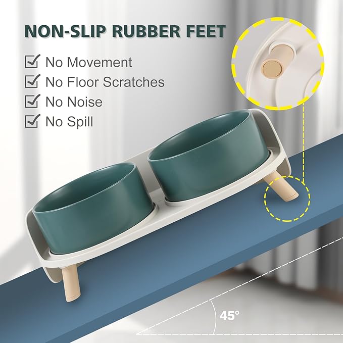 - No More Messy Floors - This raised dog bowl with a splash proof guard which helps prevent the spills or messes splashing to the floor, saving your time on mopping and wiping. The bottom of each leg is equipped with non-slip rubber to prevent sliding when the pets are eating, and provide protection for your floors.