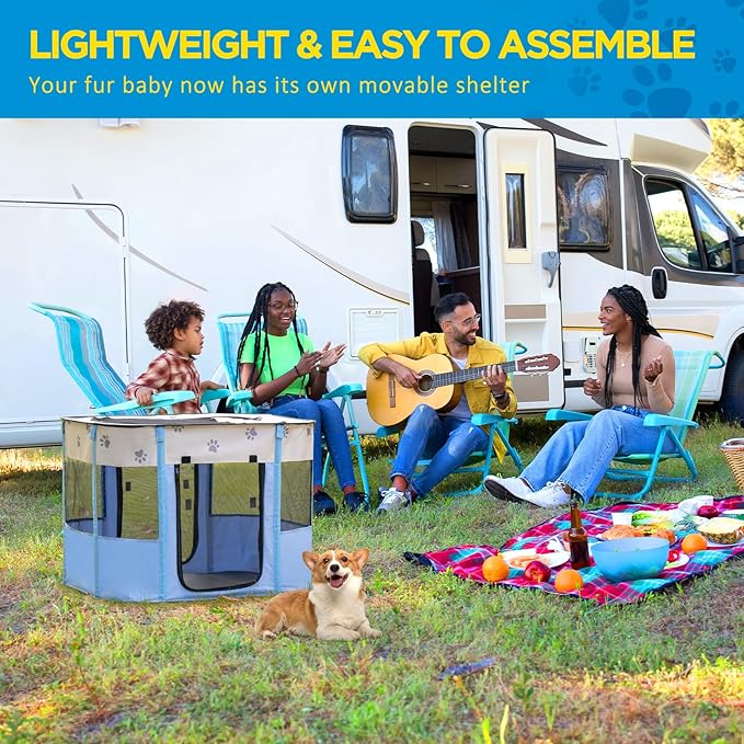 - A multipurpose playpen works as a pet house, delivery room, or shade tent for outdoor travel and camping