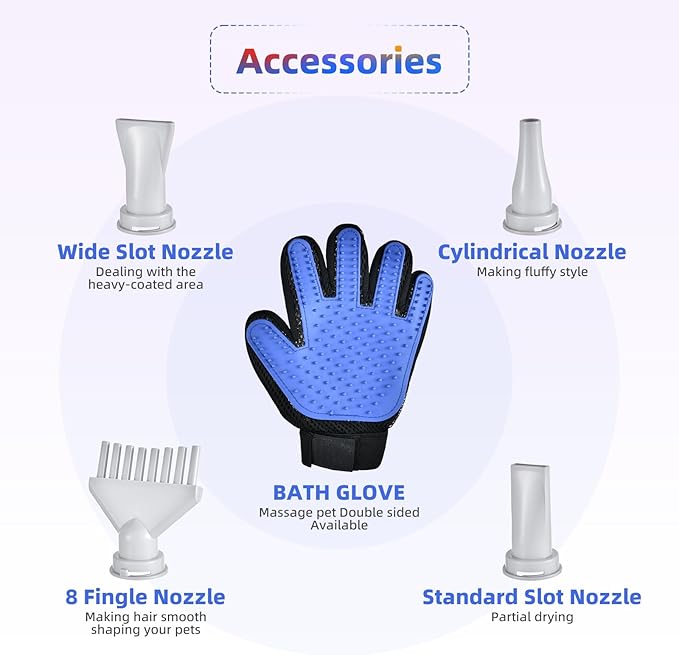 Entosun Dog Dryer, Pet Hair Dryer, 4.3hp/2800W Adjustable Speed and Temperature, High Velocity Dryer, Dog Blower Grooming Dryer with 4 Nozzles and Grooming Gloves (Pink)