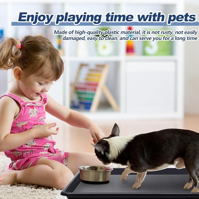 - Protective Design for Safety: our dog tray is designed with smooth edges to keep your dog safe; The raised sides control spills effectively, keeping your floors from stains and mess; The rigid plastic ensures sturdiness, offering a clean and secure environment for your pet