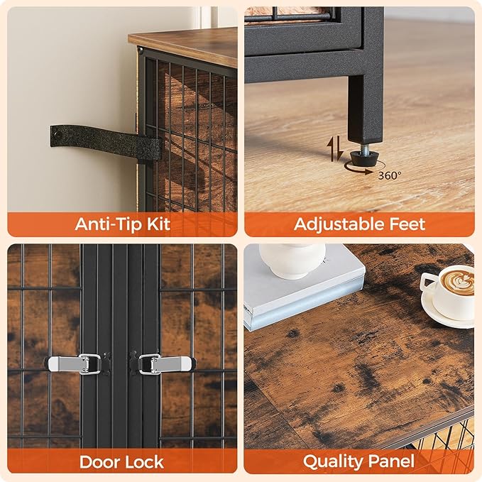 - Right Size: The size of the dog crate is 43.3"L x 21.7"W x 26.4"H, before purchasing, please measure the height and length of your pet to ensure enough comfort. This dog crate furniture has a spacious interior for your furry friend, suitable for 2 small dogs under 40 lb each, or a large dog under 80 lb