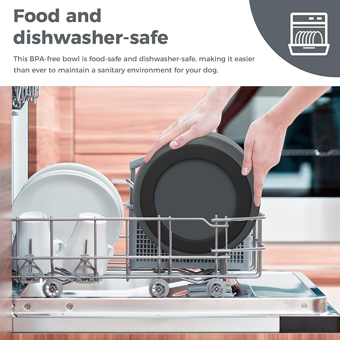 - Non-Slip: The bottom of our dog bowl is made of silicone and will not scratch the floor. Are you afraid that in a quiet resting environment, your pet will make a sound of rubbing against wood and tiles because it eats happily? Our dog bowl basically prevents this situation from happening