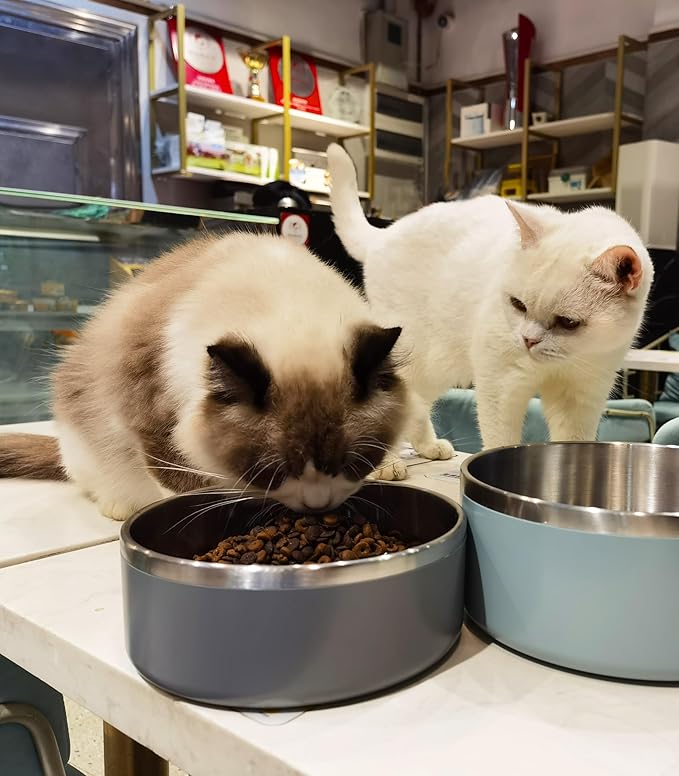 - Easy to Clean: Stainless steel pet bowls is very easy to keep clean and nothing sticks, and double dog bowl also dishwasher safe (which is important, as a dirty pet bowl can result in illness)