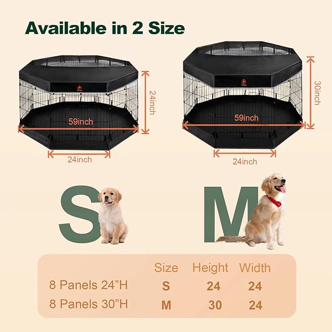 PJYuCien Puppy Playpen Indoor - 8 Panels 24”H Dog Playpen with Storage Bag, Bottom and Top, Better for Small Pets