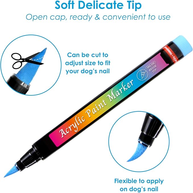 - 【GENTLE AND PRECISE APPLICATION】- The soft brush tip of the dog nail polish pen ensures a comfortable and stress-free grooming experience for your pet. The even ink flow and pen-like design make it easier to use than traditional nail polish brushes. The flexible tip allows for 360° application, covering all areas of your dog's nails, including the sides and roots.