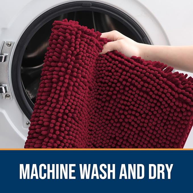 OLANLY Dog Door Mat for Muddy Paws 59x24, Absorbs Moisture and Dirt, Absorbent Non-Slip Washable Mat, Quick Dry Chenille, Mud Mat for Dogs, Entry Indoor Door Mat for Inside Floor, Burgundy