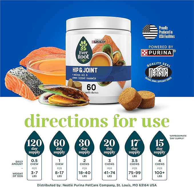 - Joint supplement for dogs made with Green-lipped mussels for anti-inflammatory benefits