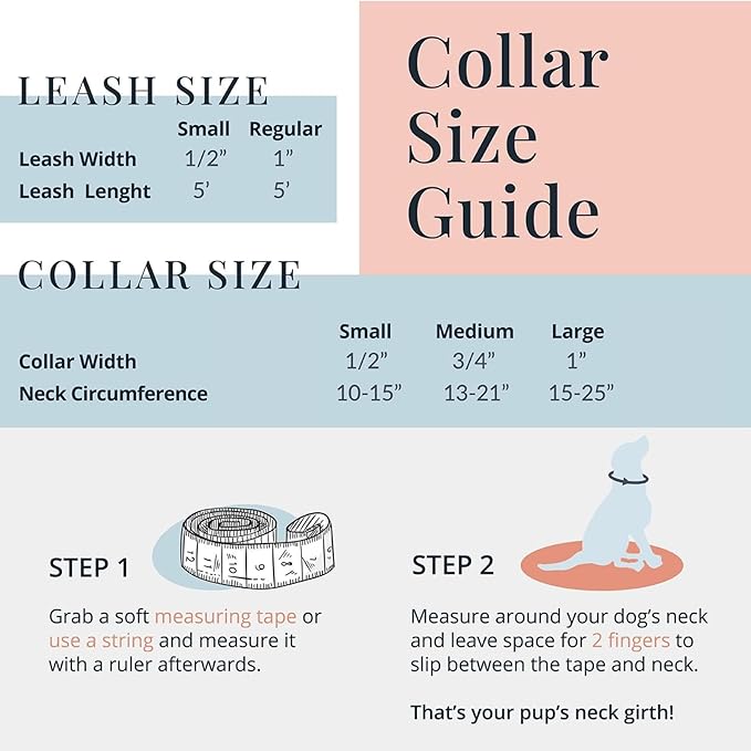 - đ€LOOKING FOR A MATCHING COLLAR+LEASH SET TO USE ON WALKS? Weâve got you covered. And youâre going to love the bright, colorful options! Our beautiful collars have matching leashes that are perfect for dog walking and hiking. Leashes are 5 feet long, with a comfortable, soft hand loop that keeps you in control of your pooch. Leashes come in two widths and can be purchased separately. Browse our Amazon store for more options