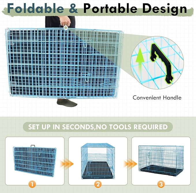 - Easy to clean: Tray included with dog cage - durable, leak-proof, and resistant to stains, warping, corrosion, and odors