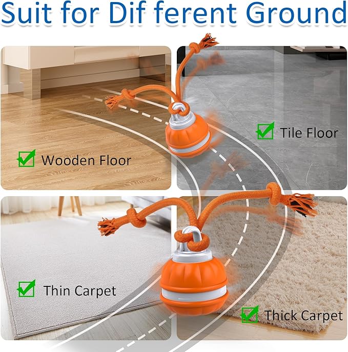 - Using Scenarios: dog smart ball can roll on any type of floor such as marble, wood, tils floor, thin carpet, thick carpet etc