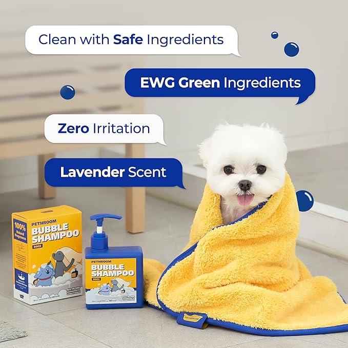 [PETHROOM] Bubble Shampoo for Dogs - Gentle, Deep-Cleaning Formula with Organic Ingredients, Hypoallergenic and Tear-Free, 10.1oz