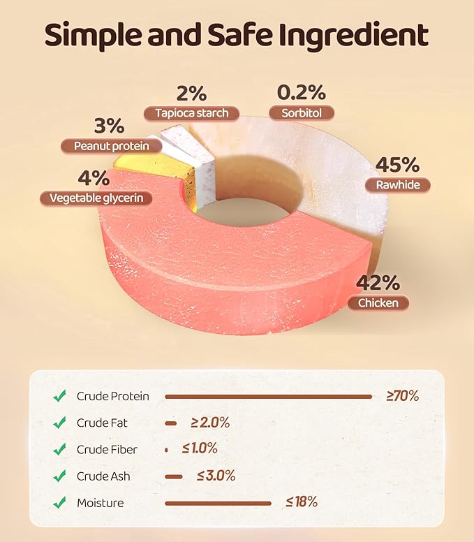 • 【Premium Ingredients】 The rawhide is sourced from reputable suppliers and free from additives, chemicals, or artificial flavors. Similarly, the chicken used is non-caged, ensuring a safe and satisfying chewing experience for your dog