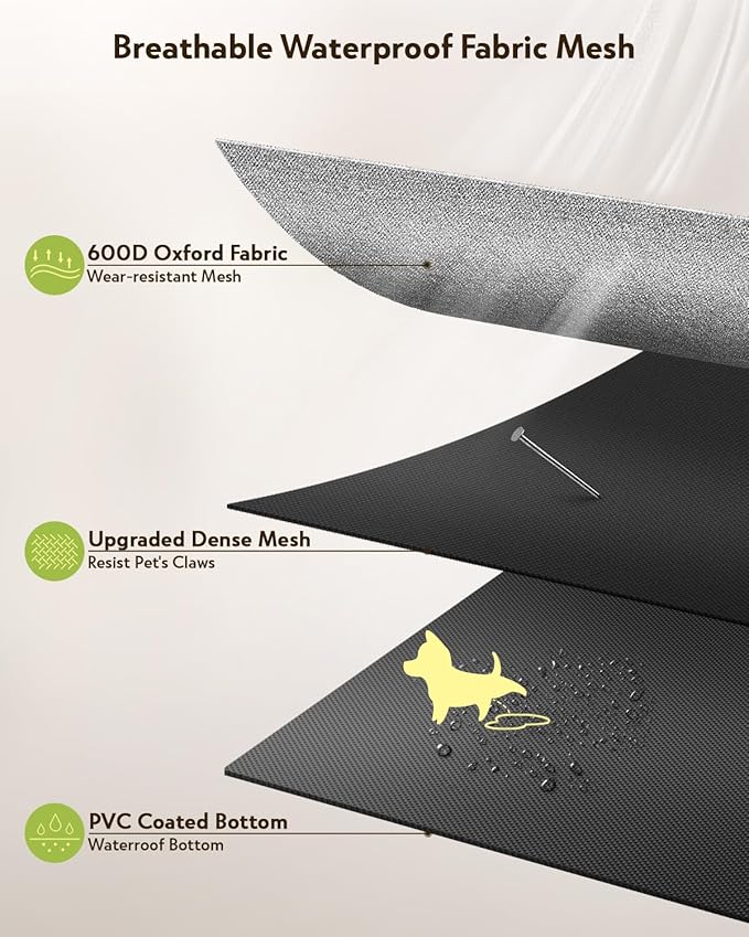 - STURDY VERSATILE :Pet playpen is composed of upgrade dense mesh and 600D Oxford fabric which is scratch-resistant and stable.The bottom of the dog playpen is water-resistant.You can also put a blanket underneath in case of getting dirty or wiping spills.Suitable for small animals such as puppy, kitten, dog, cat, bunny rabbit, chicken, ferret,and even a hamster(Not suitable for pets with excessive teething or destructive chewing behavior.)